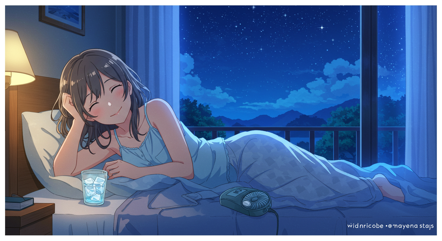 무더운 밤일수록 수면 리듬이 흔들리기 쉽지만, 가능한 한 매일 같은 시간에 자고 일어나기가 중요합니다.